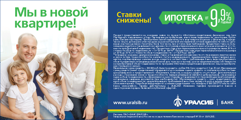 ПАО "БАНК УРАЛСИБ" снизил ставки по ипотеке